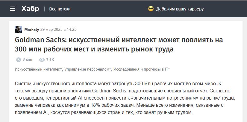 • "ИИ заберёт 300 миллионов рабочих мест"